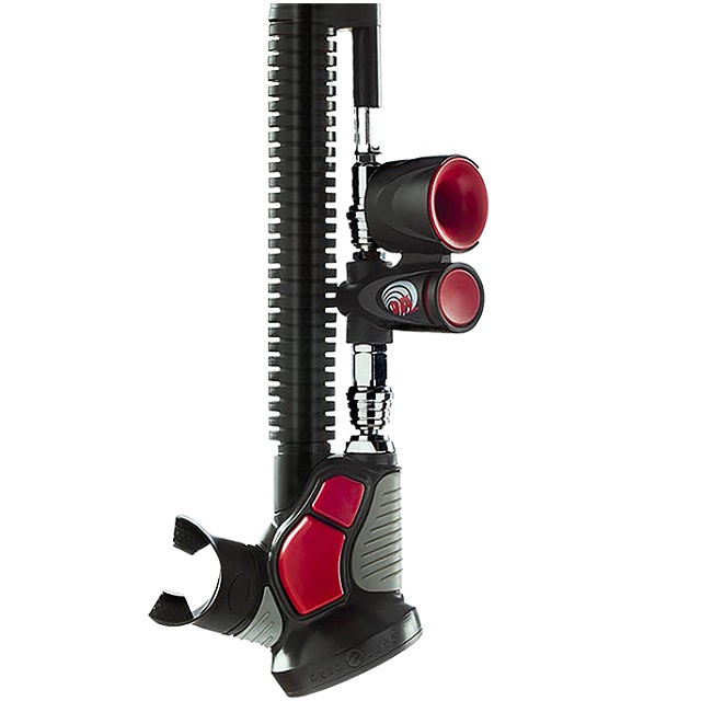 水陸両用エアホーン。コンパクトになったボディに機能を凝縮。音量調節機能を備え、誤作動防止のロック機構も新たに追加。切替動作も無くなり、強く握ると自動的に水面用ホーンも作動するダブルモードで、緊急時でのレスポンスも向上しました。音量調節は握る強さを変えるだけなので感覚的にシチュエーションにあわせた音量を得ることができます。