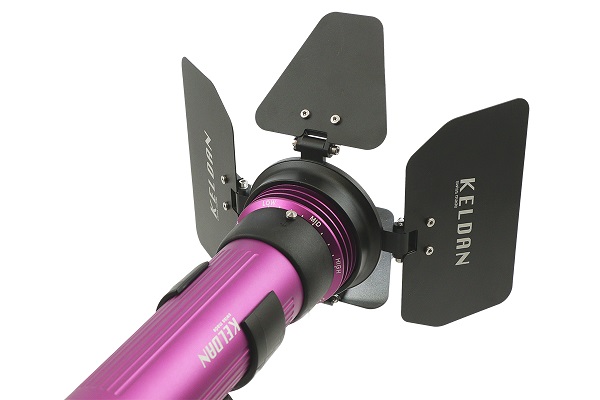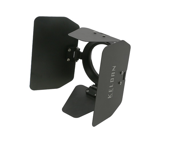 KELDANライトの前面に固定されるバーンドア。光源を囲むように4枚のヒンジ式ドアが付いています。ライト本体に取りつけることで、光の形状をコントロールすることができます。 |
