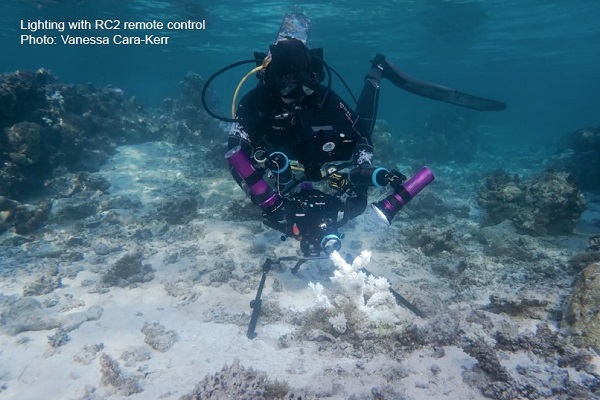 自由な発想ですばやく簡単に照明をコントロール。隅々まで光を照らし、壁越しでも光量を自在に調整。好きな場所に照明を配置したり、手許で光量を調整しながら逃げやすい生物に徐々に近づいたりなど、自由な発想で新しい撮影方法にチャレ ンジできます。 |