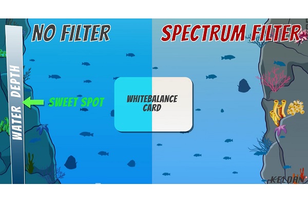 水中の照明条件のスペクトル測定に基づき科学的 に設計された色補正フィルターです。 |