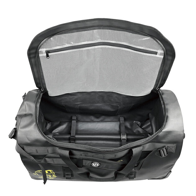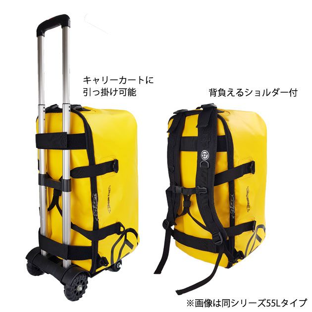 防水性の高いターポリン素材でできており、ダイビング機材やキャンプ用品などでかさばる荷物を運ぶ時に重宝する大容量サイズ。重い荷物を運ぶ時に便利なサイドハンドルと、濡れたものをいれた際にたまった水を抜けるドレンプラグ付きです。 |