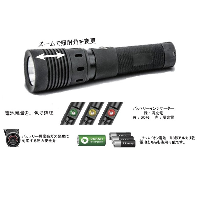 ●光束: 830 ルーメン ●照射角: 5 度 ●点灯時間: 7.5時間 |