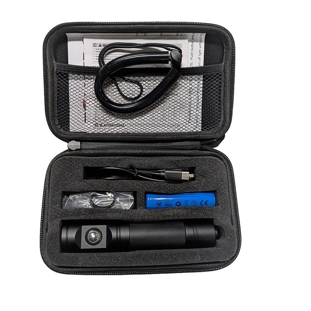 ●光束: 3000 ルーメン(100% / 50% / 25% / SOS / フラッシング(10Hz)) UV光、赤色光 |